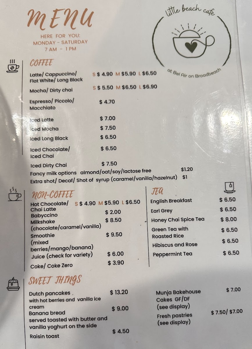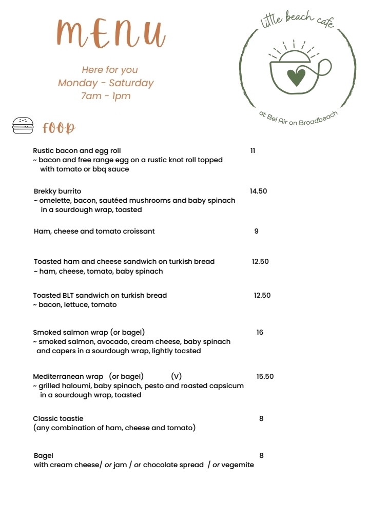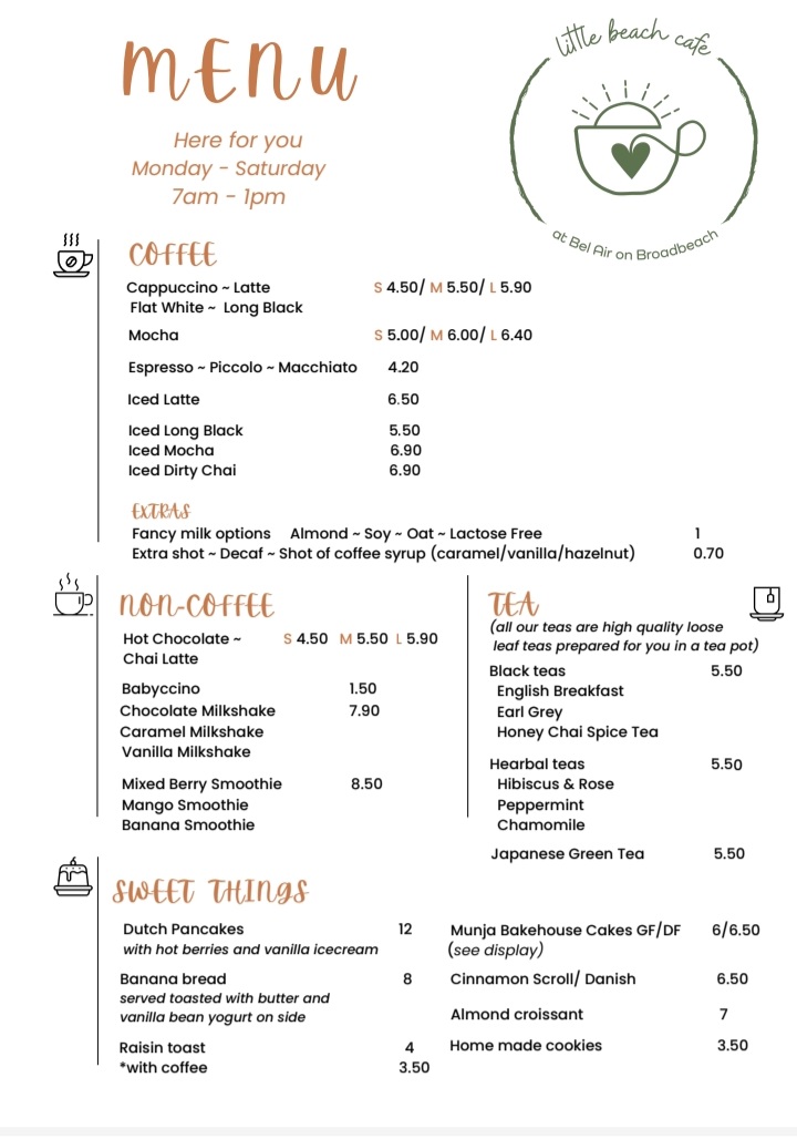 Little Beach Cafe at Bel Air Menu