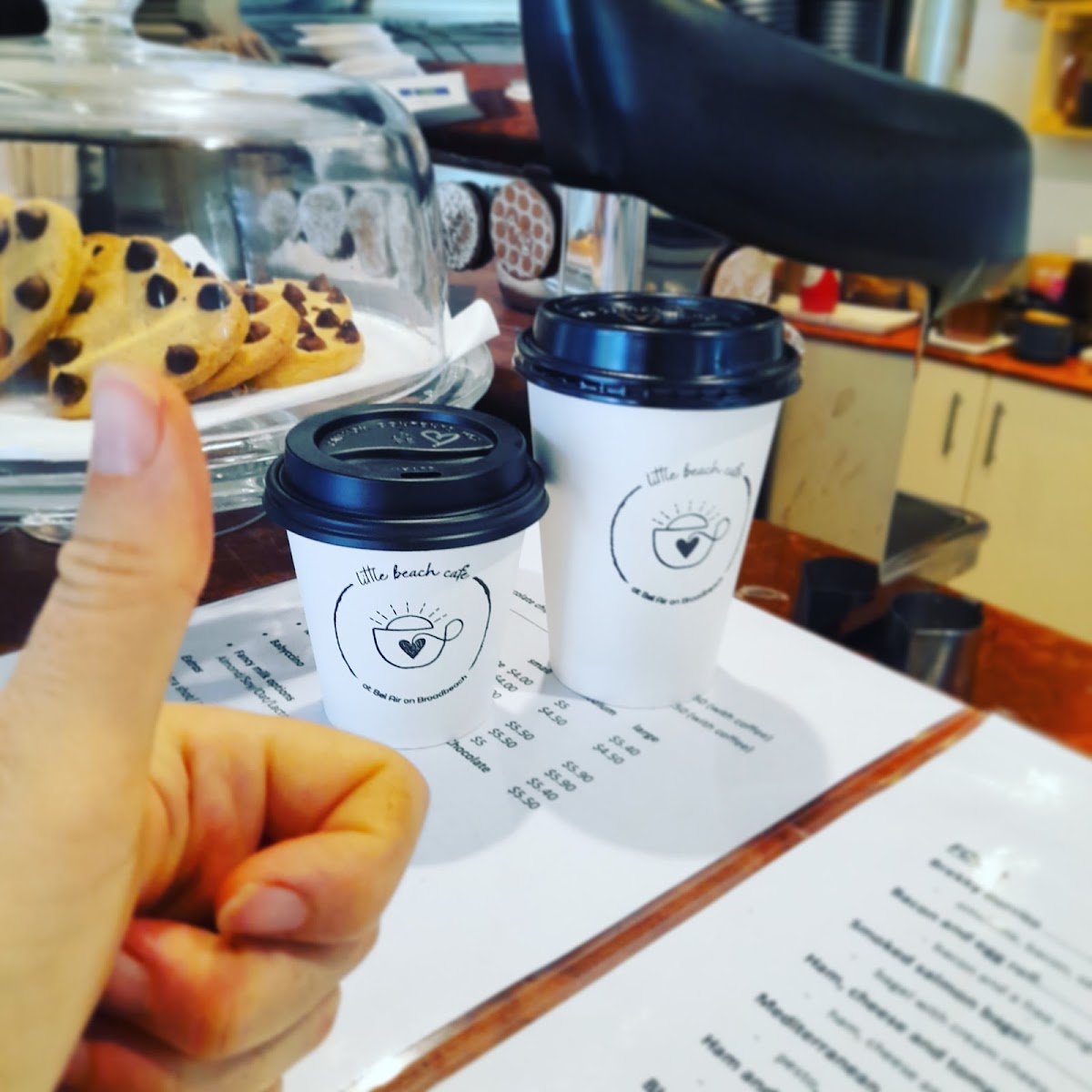 The menu is structured into categories covering hot drinks, iced drinks, smoothies and milkshakes, and light food items. This arrangement supports quick ordering and takeaway service, suitable for visitors looking for a convenient option for breakfast or a light snack throughout the day.